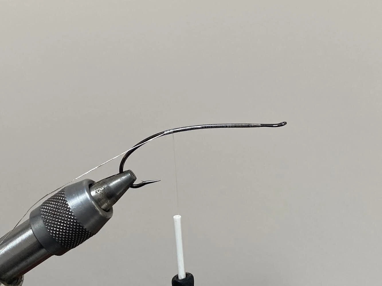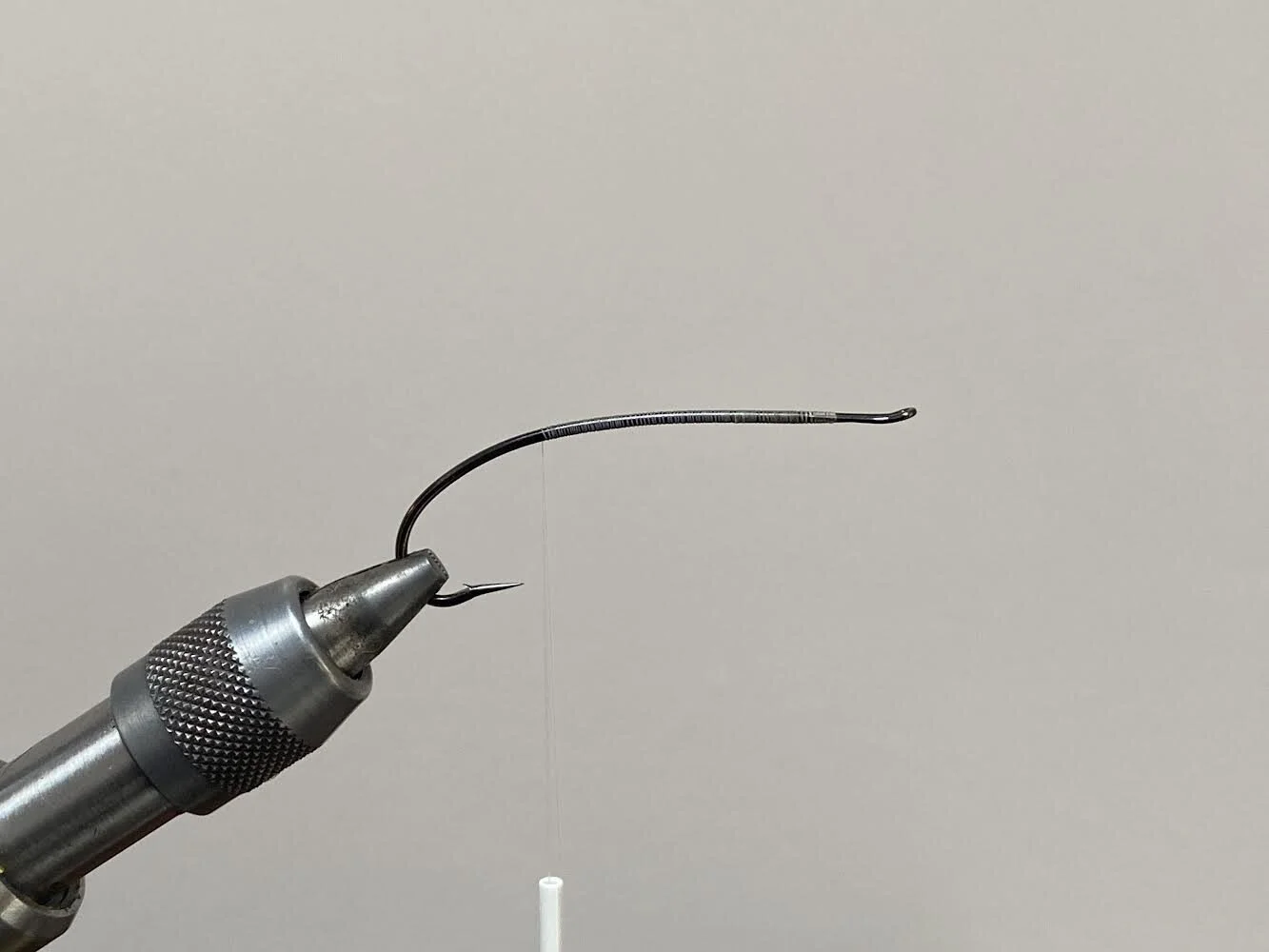 Wrap your white thread down to the end of the shank. I’ve used white thread for the beginning of the fly to keep the butt of the fly nice and bright. Black thread would dull down the chartreuse dubbing.